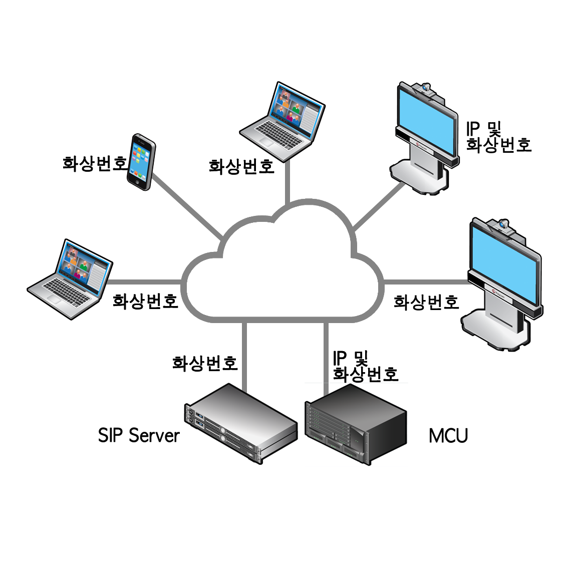- — SIP방식: 화상번호 등록 필요